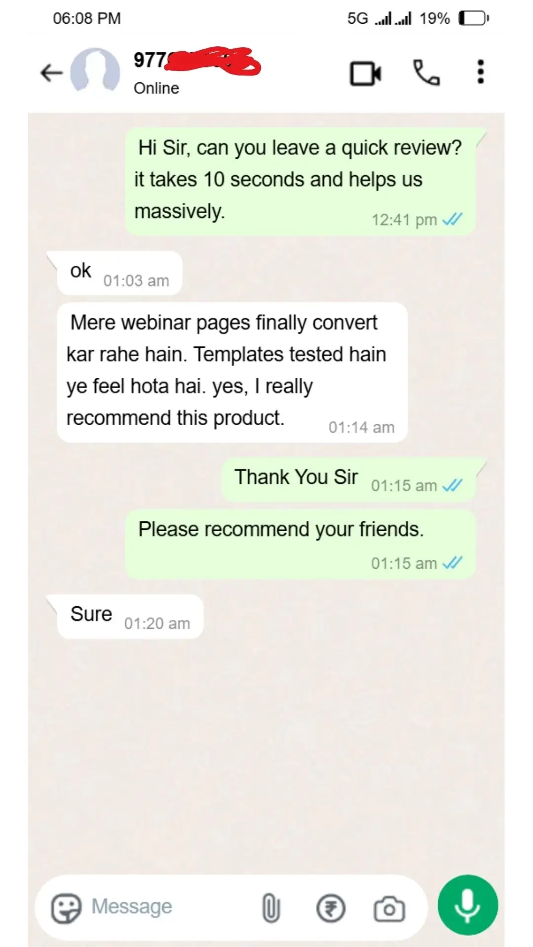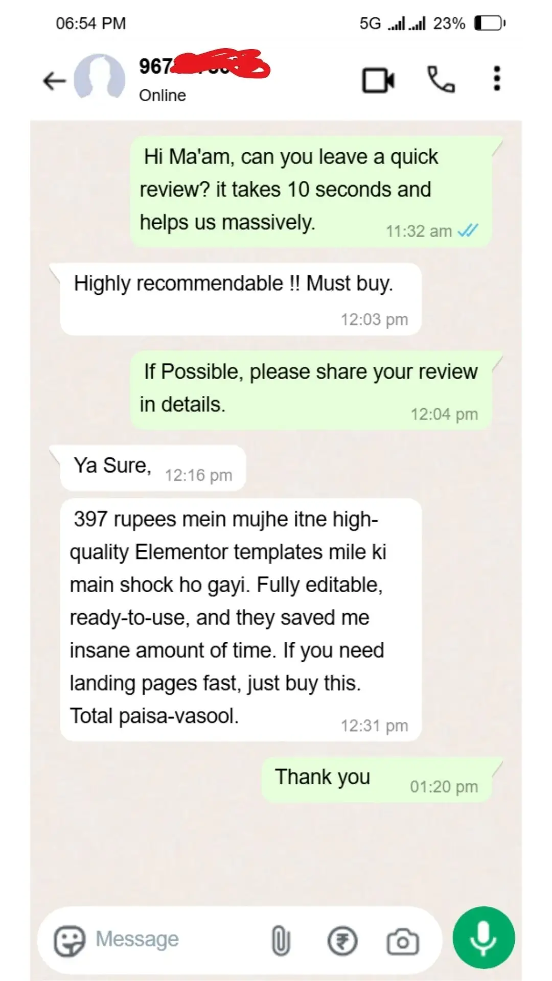 You get direct WhatsApp support. Just message us and we’ll help you quickly.
